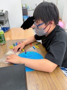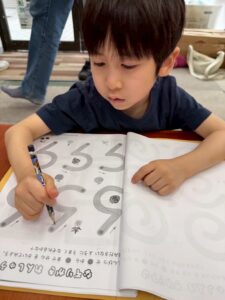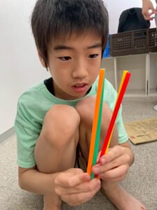 夢中になってストローに息をふきかけ
