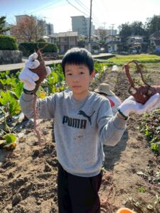 学校後にサツマイモ畑に直行をして