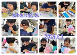 あわあわあじさい作り🎶   絵の具を使って   息を吹きかけると   あわあわあわあわ*ଘ(੭*ˊᵕˋ)੭* ੈ✩‧₊˚   吹く力、腹筋が必要な…